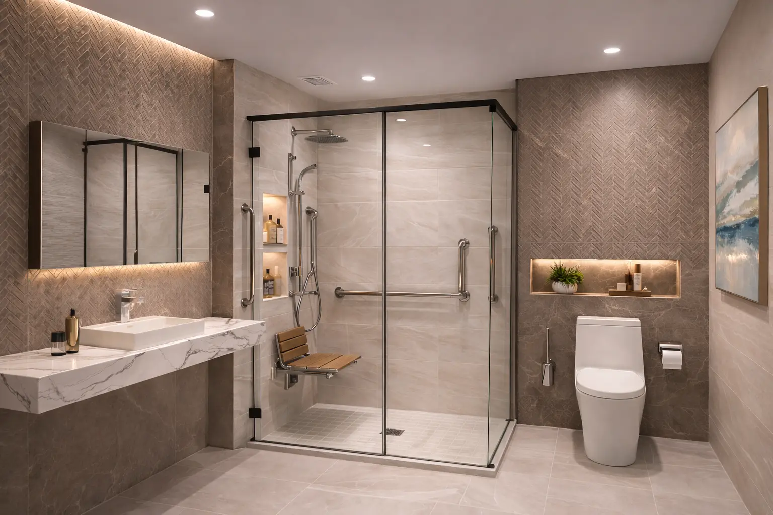 Aging-in-place bathroom upgrades, accessible storage and reach-friendly layouts, comfort-height toilet improvements...